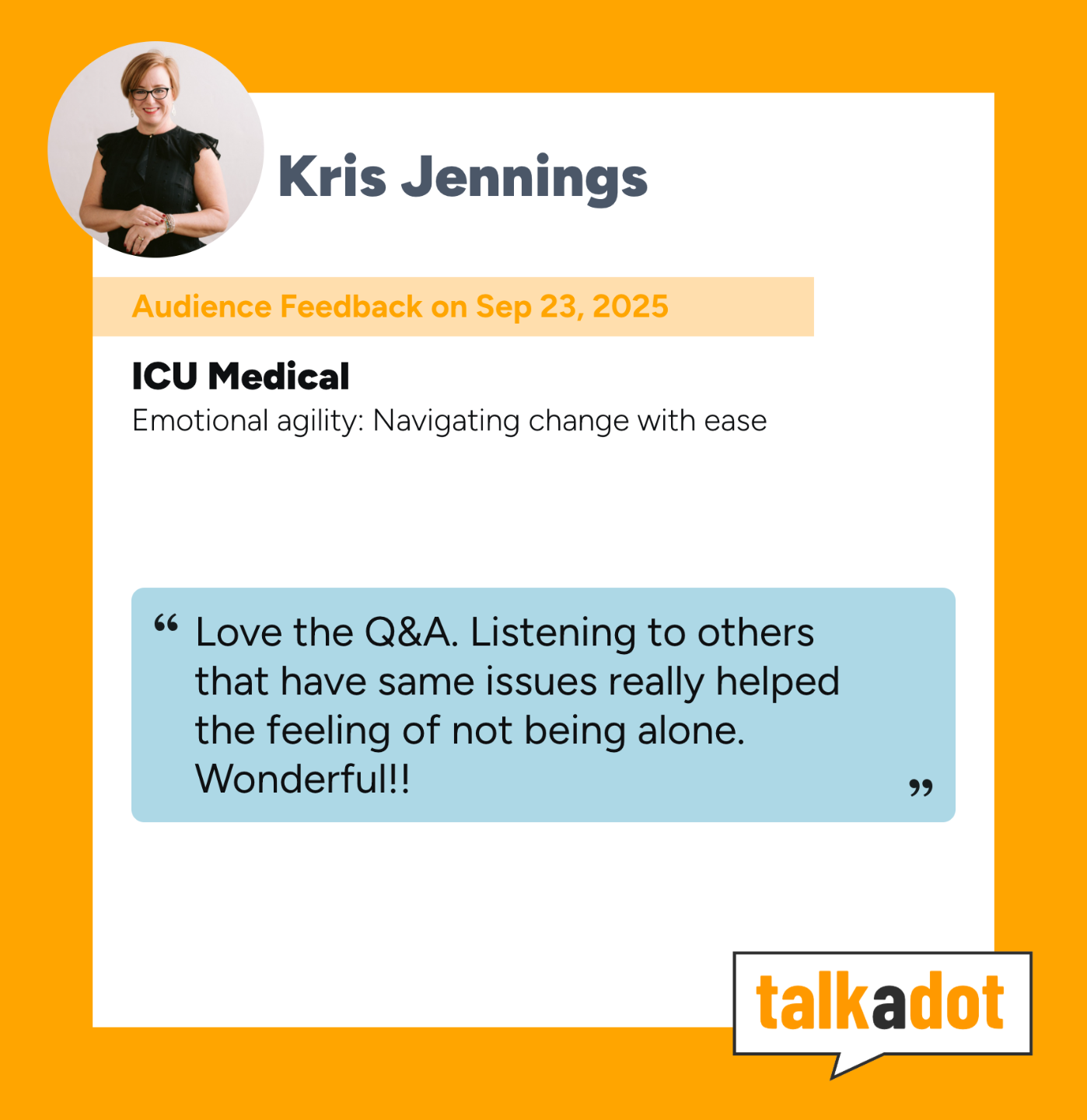 Participants build change competence and confidence, increasing resilience and ability to adapt to change through my talks and workshops.